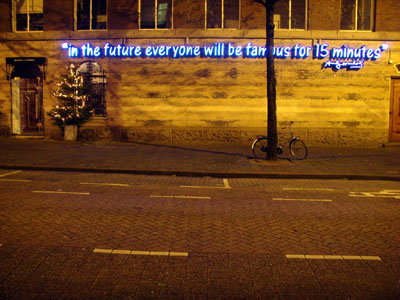 Aber amüsant fand ich es allemal, befindet sich dieser Markt doch fast neben dem Spruch von Andy Warhol (der ist dort mit Leuchtröhren groß an eine Wand gehängt:)