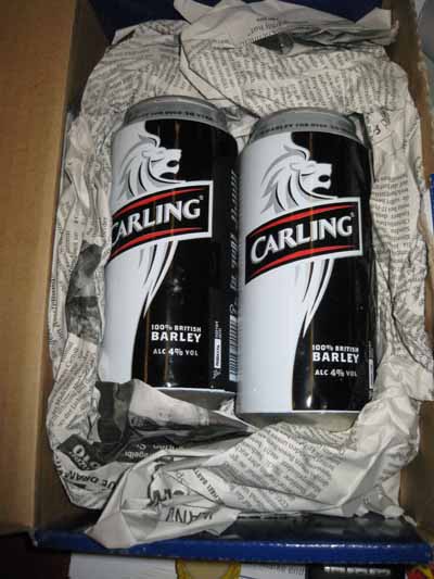 Die "Carling"-Dose, die ich Anfang Februar vorgestellt habe, inspirierte Blogleser Birger dazu, mir zwei volle Dosen des Bieres zuzuschicken. Vielen Dank für die beiden Dosen und ich freue mich schon darauf, das Bier zu probieren. (Ich werde berichten, ob es mir geschmeckt hat.)