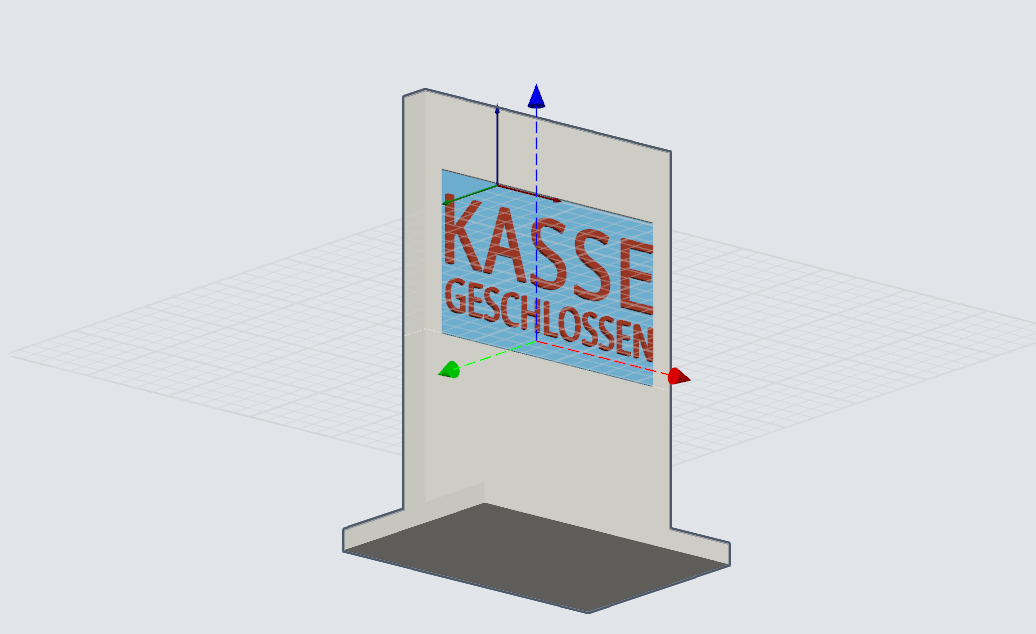 Hier ist das Schild in der zusammengesetzten 3D-Ansicht zu sehen: