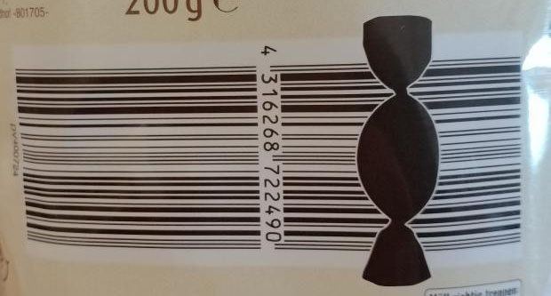 Auf den "Schoko Drops"-Schokobonbons der Netto-Eigenmarke "Schokoliebe" findet sich ein Strichcode, der mit einem der Schokobonbons aus der Packung "durchgestrichen" wurde.