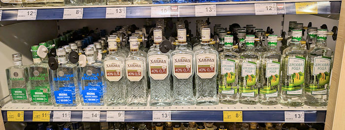 Andere Länder, die selben Probleme. Auch in Riga / Lettland wird Alkohol geklaut und auch dort schützt man sich mit entsprechenden technischen Mitteln. In diesem Supermarkt waren die Spirituosen zum Beispiel mit Hartetiketten gesichert, die unseren "Zippeln", den Flaschensicherungen, die wie ein Kabelbinder um den Hals der Flasche gezogen werden, erstaunlich ähnlich sahen: